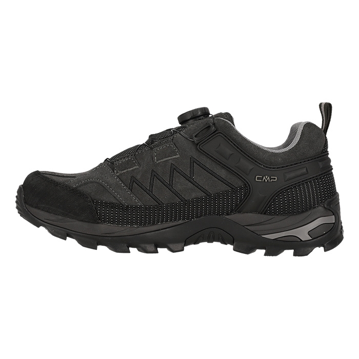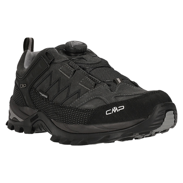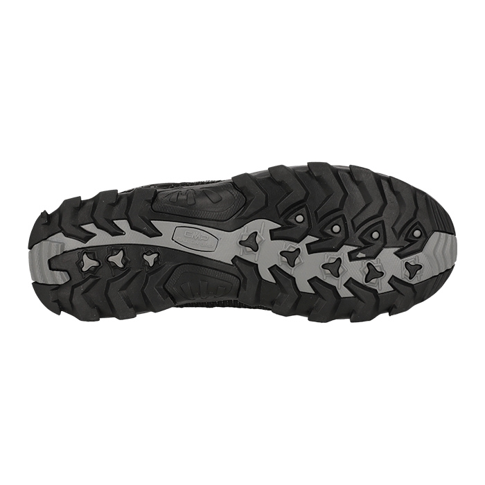 CMP’s FullOnGrip-ydersål sørger for fremragende trækkraft på både våde og tørre overflader, hvilket gør RIGEL LOW FITGO WP til en pålidelig partner på alt fra stejle bjergstier til skovens mudrede passager.