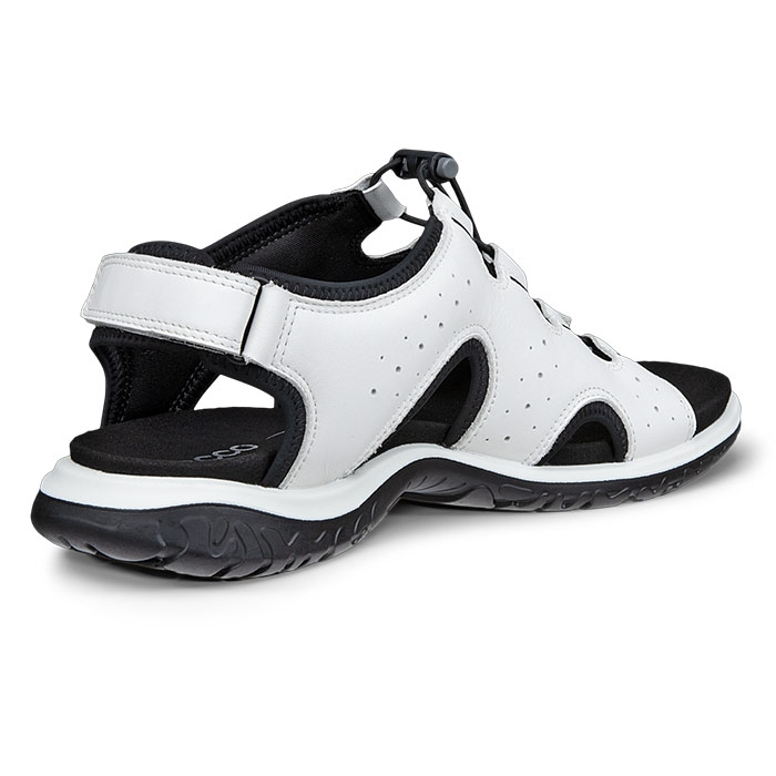 Træd ind i komfort og stil med denne hvide ECCO OFFROAD ROAM sandal i retro-design. Sandalen kombinerer et klassisk, tidløst look med praktiske funktioner som speed-laces for hurtig justering og en justerbar bagrem, så du får en personlig og sikker pasform hele dagen. Den lette sål giver god støddæmpning og fleksibilitet, mens den slidstærke gummiydersål sikrer et sikkert greb på forskellige underlag.