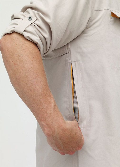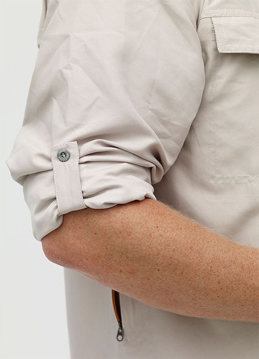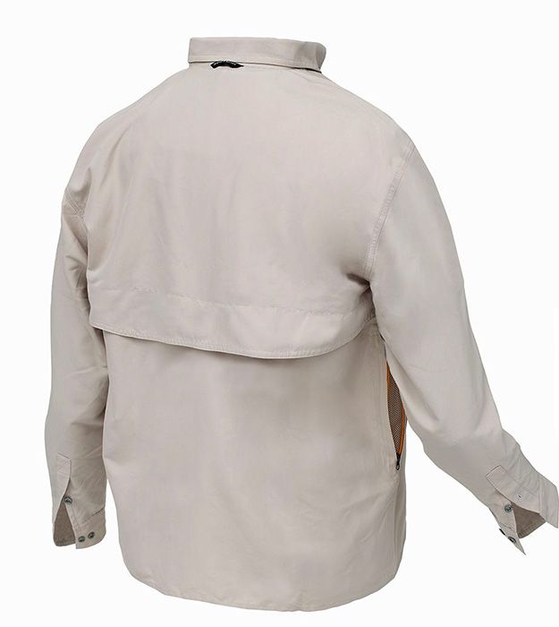 Polybrush 2 er en luksusskjorte til en varm dag, uanset om du er på en intensiv fisketur, på fotosafari i Afrika eller går en varm sommerdag med hunden. Skjorten er lavet i blødt materiale med en høj åndbarhed. Ærmerne kan knappes op. Der en ventilationslomme på hver side med lynlås og en stor åbning på bagsiden. Den øverste halvdel af skjorten har tyndt netfor som giver god komfort mod huden. Materialet beskytter mod UV-Stråler og tørrer lynhurtigt, når du skal vaske den. Skjorten må kun håndvaskes ved 30 grader, men den er til gengæld krølfri.
