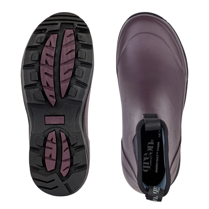 Støvlen er fremstillet af blødt, men holdbart naturgummi, der effektivt holder vand ude og fødderne tørre. Indvendigt finder du Green Comforts EnergySole™ Shape, der med 4,5 mm tykkelse, ekstra polstring ved hæl og forfod samt indbygget svangstøtte giver optimal støddæmpning og støtte, som aflaster hele kroppen.