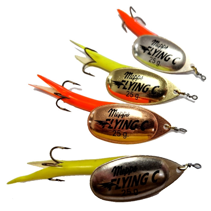 Mepps Flying C Upstream er en gennemprøvet og særdeles effektiv spinner til laksefiskeri i å og elv. Denne version er den tungeste Flying C i serien og vejer 25 g, hvilket gør det lettere at fiske markant dybere – selv i kraftig strøm.
