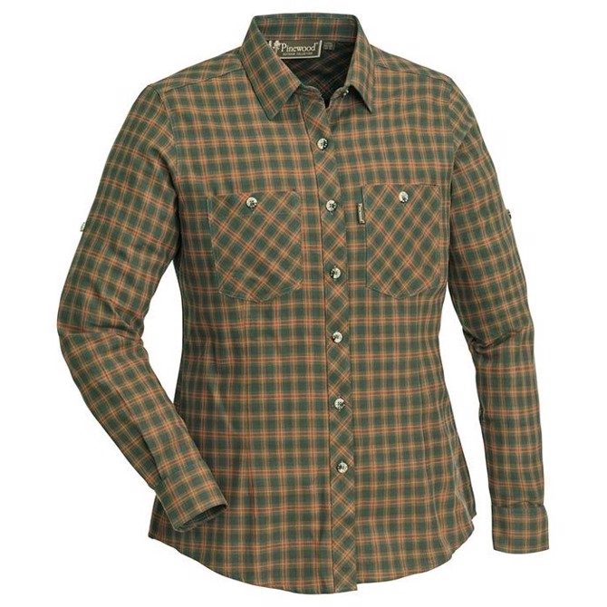 Flanellskkorte med feminint facon. Roll-up funktion på ærmene.