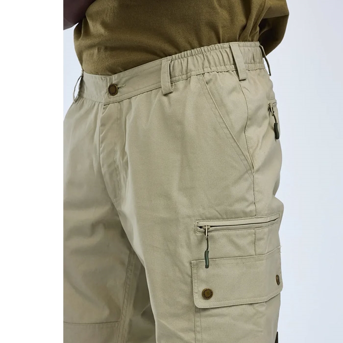 Smart buks i samme vind- og vandafvisende TC-1200 materiale. Lårlomme på hver side med trykknap, lynlås lomme på venstre side, 2 baglommer med lynlås. Lynlåslommen på siden kan anvendes som sikkerhedslomme eller mobiltelefonlomme. Ekstra forstærkning på knæene. Strop på lynlåslommer til nem betjening. Elastik i talje. Med UV beskyttelse.