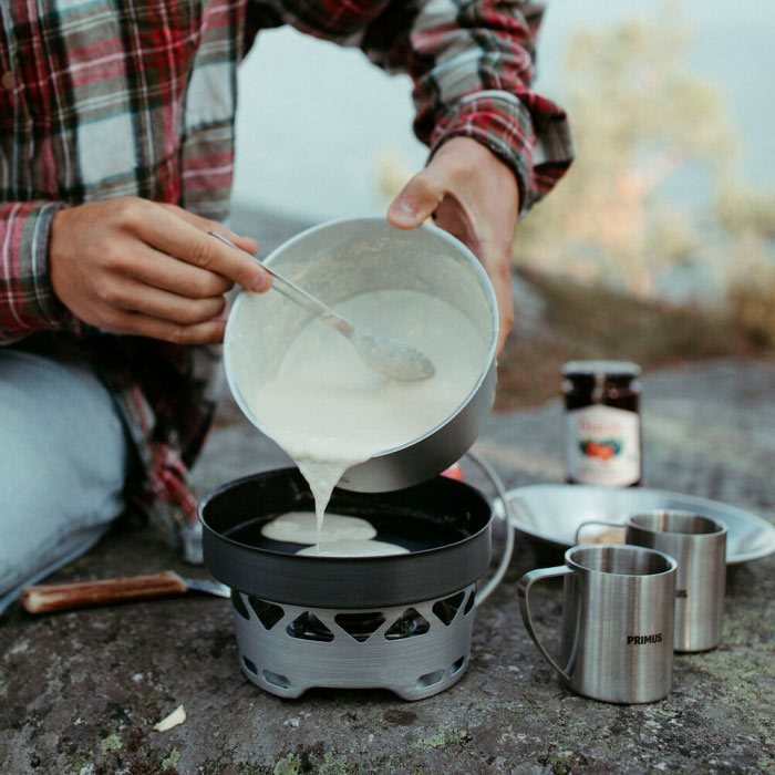Primus Essential Stove koger 1 liter vand med en 2000 W flamme på under fire minutter så der er varmt vand til kaffe, te, havregrød og øllebrød i ekspresfart. Opvarmning af suppe, stuvning m.m. tager heller ikke længe og med to gryder på hver 1,3 liter er der hurtigt mad 1-3 personer. Til flytning af varme gryder kommer Primus Essential Stove sættet med et praktisk grydegreb.