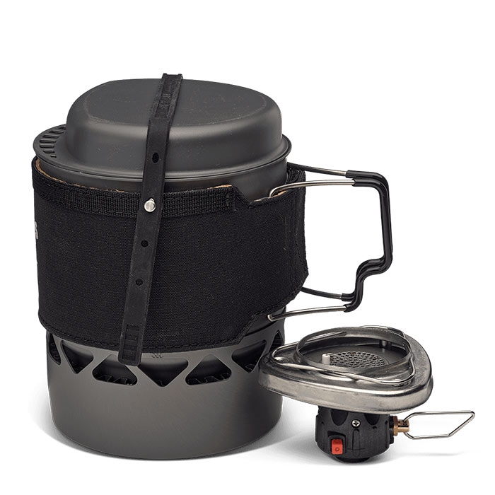 Brænderen er brændstofeffektiv og leverer en kraftig flamme, som hurtigt bringer vand i kog, så du nemt kan lave kaffe, varme frysetørret mad eller tilberede simple retter direkte i gryden. Den 1-liters gryde i hårdanodiseret aluminium har integreret varmeveksler og hældetud, hvilket gør madlavningen både hurtig og praktisk. Låget kan desuden bruges som kop, hvilket sparer plads i oppakningen.