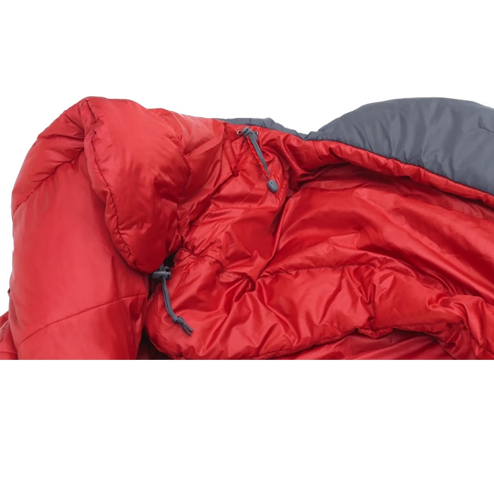 Praktiske detaljer som 3D-hætteprofil og shark fin-fodboks med ekstra isolering reducerer træk og holder varmen tæt på kroppen. Den fulde længde lynlåsbaffle og anti-snag lynlåsbeskytteren gør posen nem og sikker at bruge, mens hættestrengen sikrer en personlig og præcis tilpasning.