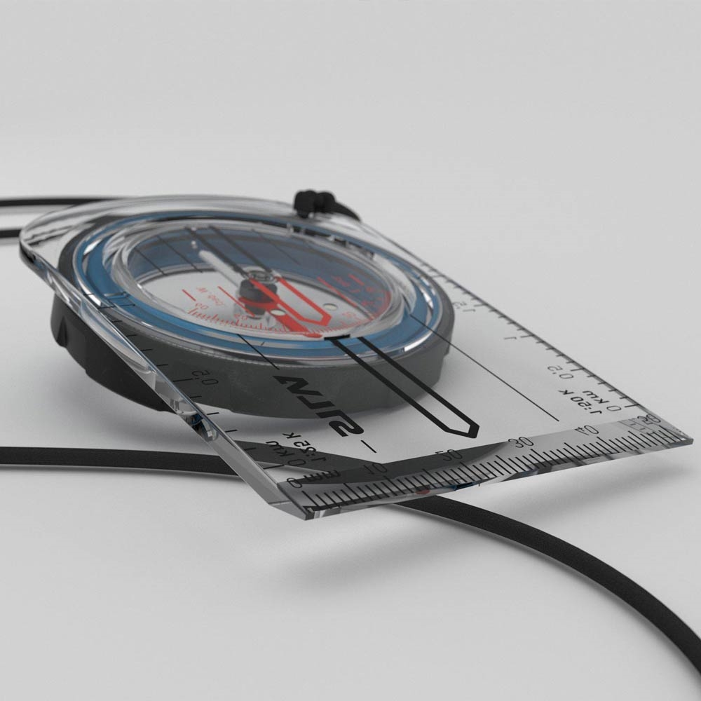 Begynderkompas med præcise måleskalaer, gummibelagt hus og aftagelig halsrem til enkel og pålidelig navigation.