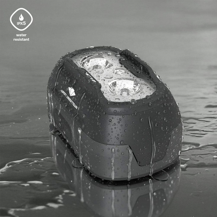 Det smalle 25 mm pandebånd giver en behagelig og stabil pasform, og den aftagelige lampeenhed kan bruges separat og monteres på andet udstyr efter behov. Konstruktionen er vandafvisende (IPX5), så den kan bruges i skiftende vejrforhold året rundt.