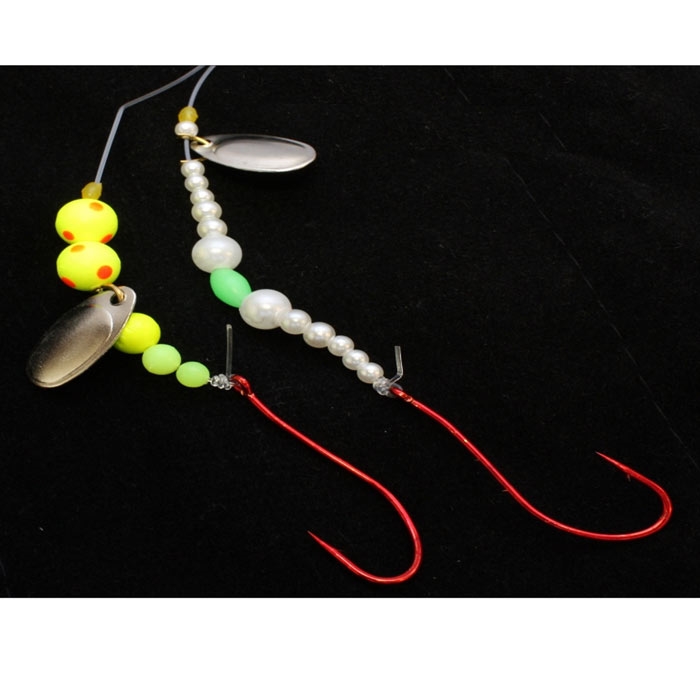 Et kort surfcasting-forfang med to forskellige pynt på de to sideforfang. De ovale glideperler gør det muligt at justere højden, alt afhængigt af ormens længde.