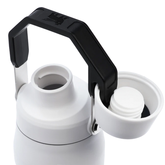 Flasken har et indbygget greb og et praktisk bærehåndtag, så du nemt kan have den med dig hele dagen. Låget skrues let af og kan fastgøres til håndtaget via den integrerede krog. Den brede åbning gør det også nemt at fylde flasken op igen samt tilsætte isterninger eller frugt for ekstra smag.