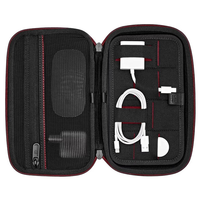 Praktisk og beskyttende tech pouch med smart organisering til dine elektroniske accessories på farten.